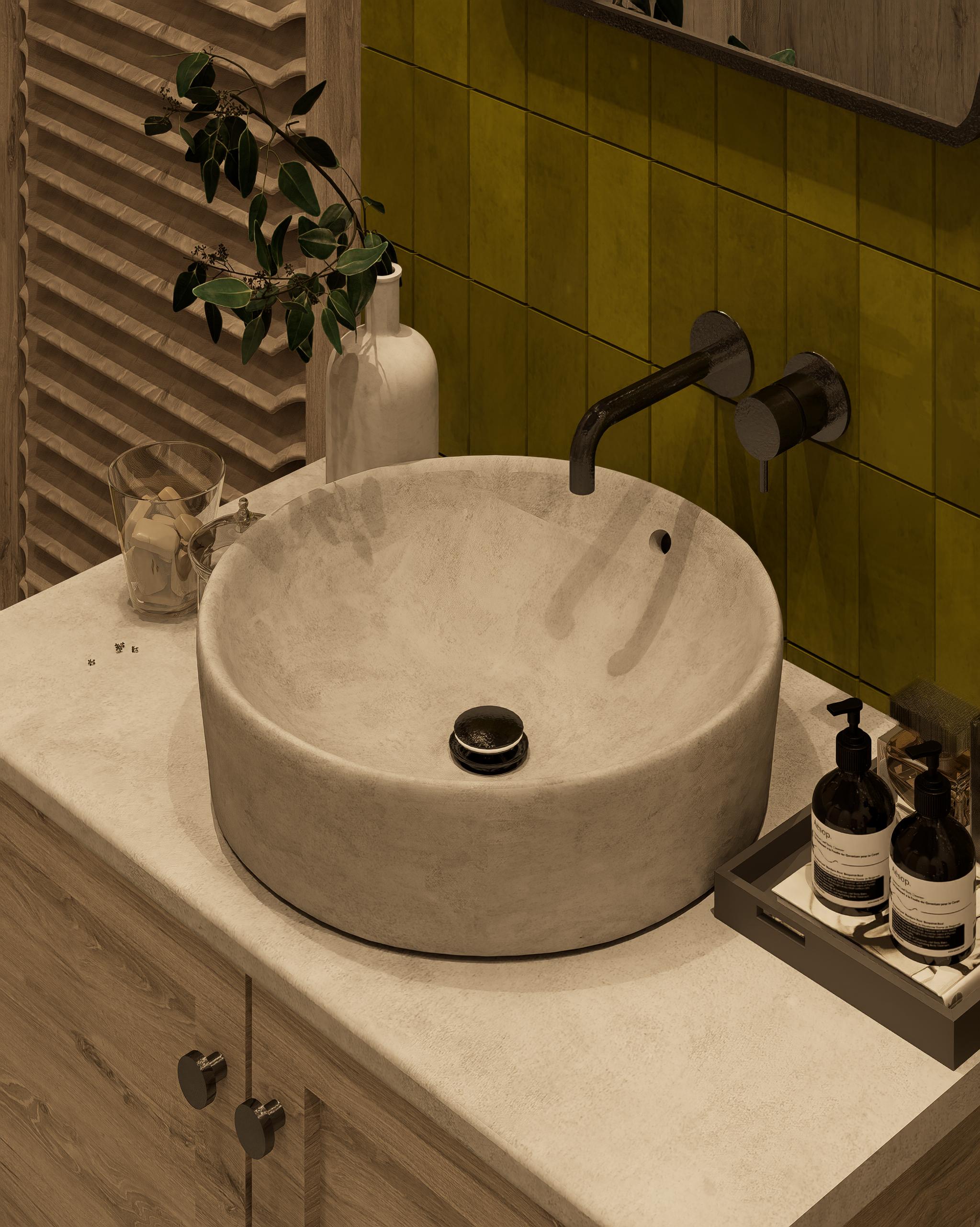 Olive Stone Washroom Dreaming of a Perfect Space? We Design. We Build. We Deliver Timeless Interiors. info@houseofatelier.com